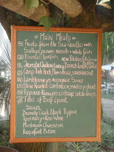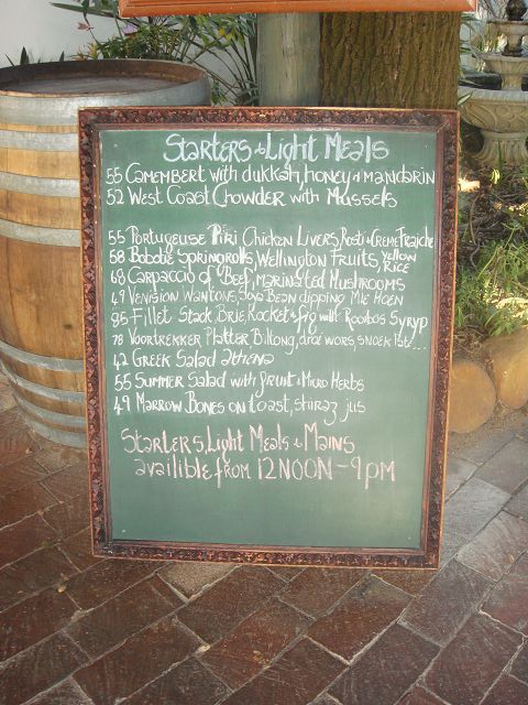 our menu is on the board and changes often. This is just an example of one of the menues.